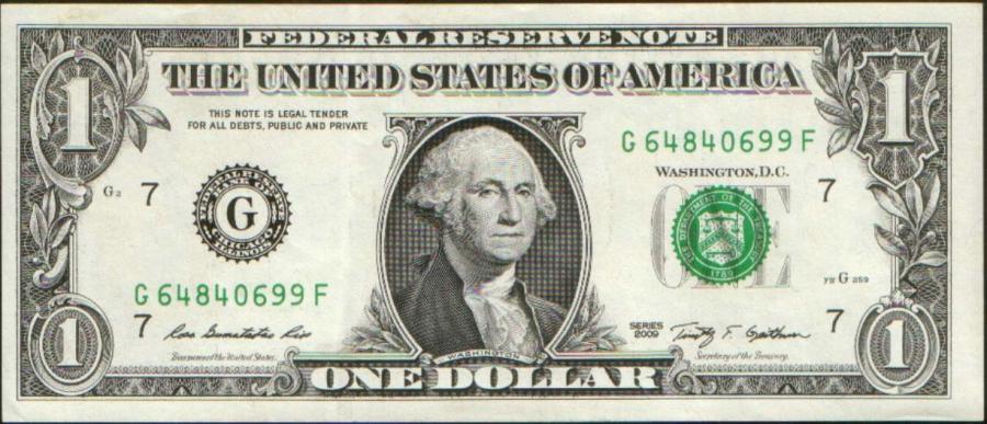 Банкнота: США, 1 доллар, 2009