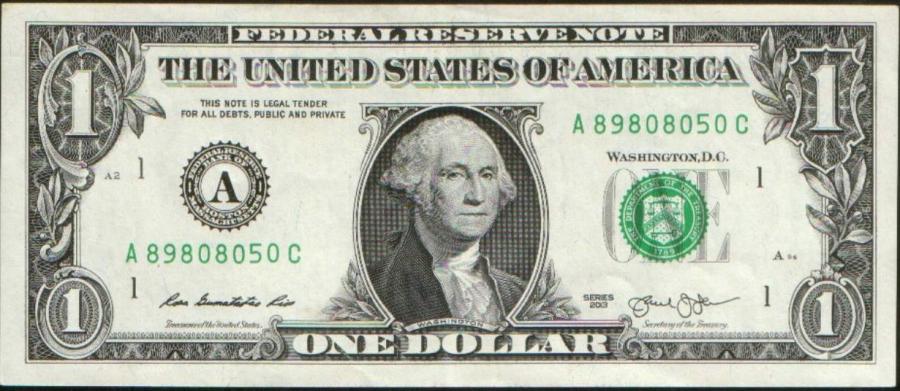 Банкнота: США, 1 доллар, 2013
