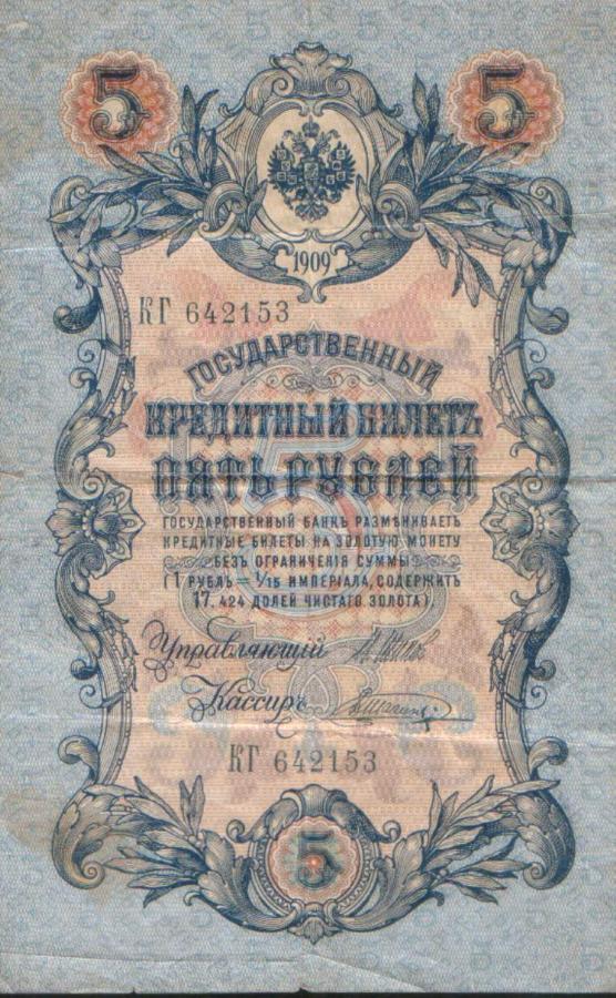 Банкнота: Российская Империя, 5 рублей, 1909