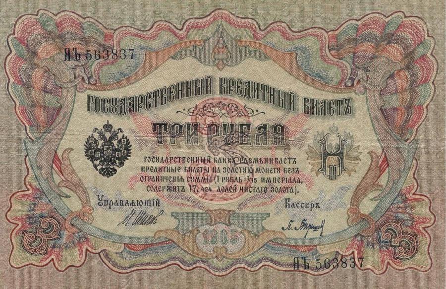 Банкнота: Российская Империя, 3 рубля, 1905